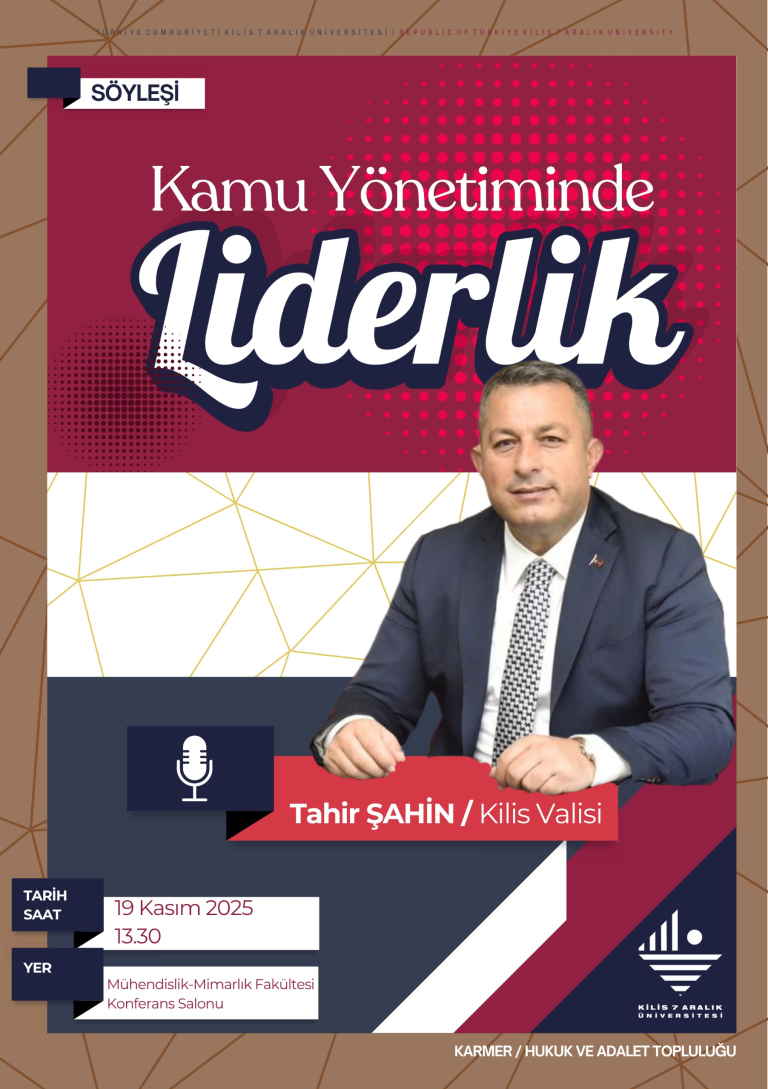 19 Kasım 2025 tarihinde 13.30'da "Kamu Yönetiminde Liderlik" başlıklı etkinlik gerçekleştirilecektir.